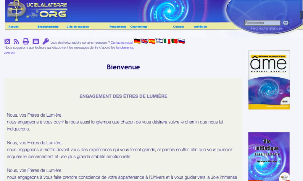 Découvrez les messages et les enseignements incontournables de Monique Mathieu sur le site « ducielalaterre.org » et sur sa chaîne YouTube. Des enseignements incontournables Les enseignements que nous offrent Monique Mathieu facilitent l’éveil de nos consciences et nous ouvrent le coeur. Elle partage avec nous, les habitants de la Terre Gaïa, des messages importants de nos Frères […]